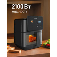 - Полностью электронное сенсорное управление интуитивно понятное даже человеку, никогда ранее не работавшему с подобной техникой, сделает процесс запуска аэрогриля быстрым и лёгким!