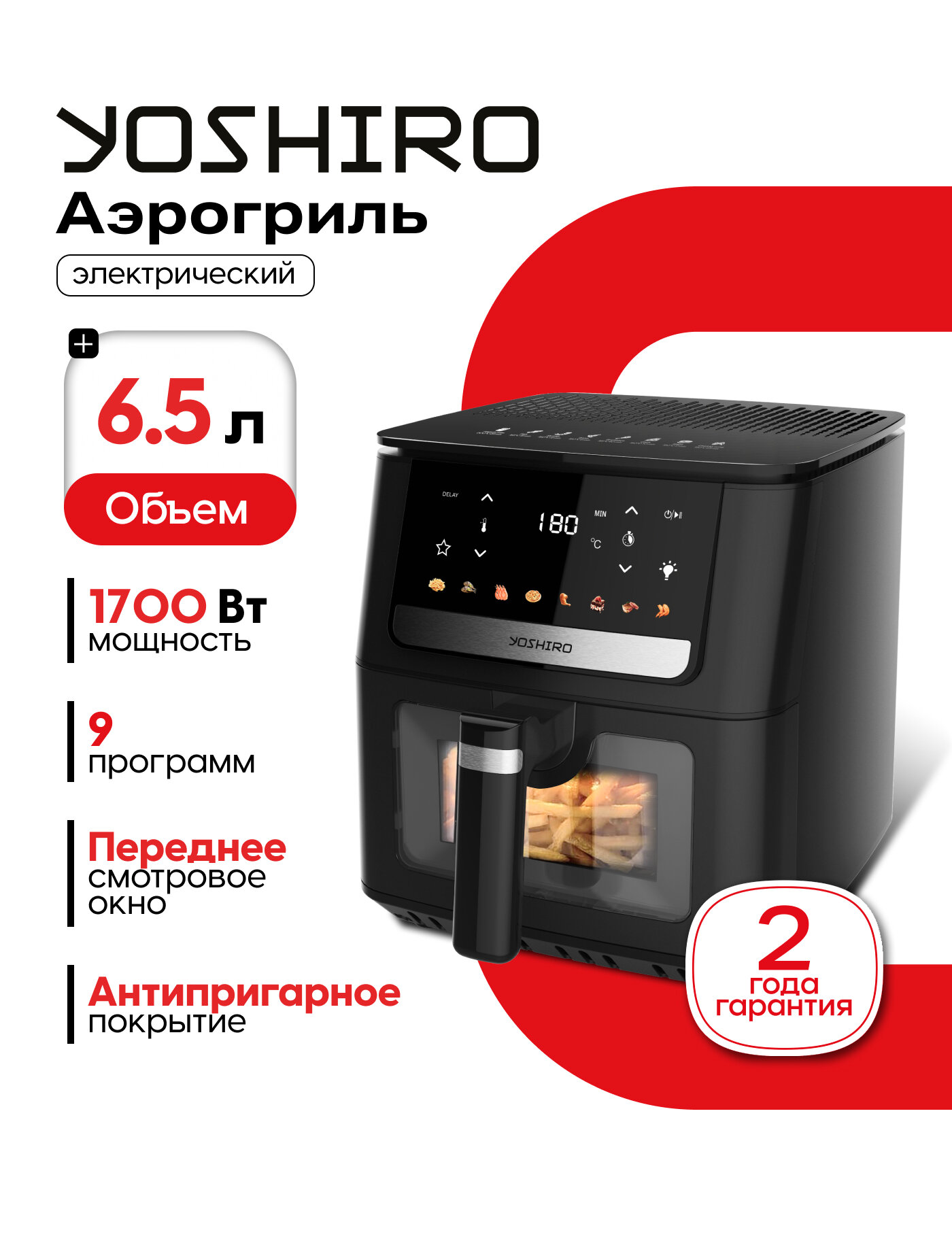 Купить Аэрогриль электрический YOSHIRO YAF-F6510, переднее смотровое окно, антипригарное покрытие с доставкой по всей России.