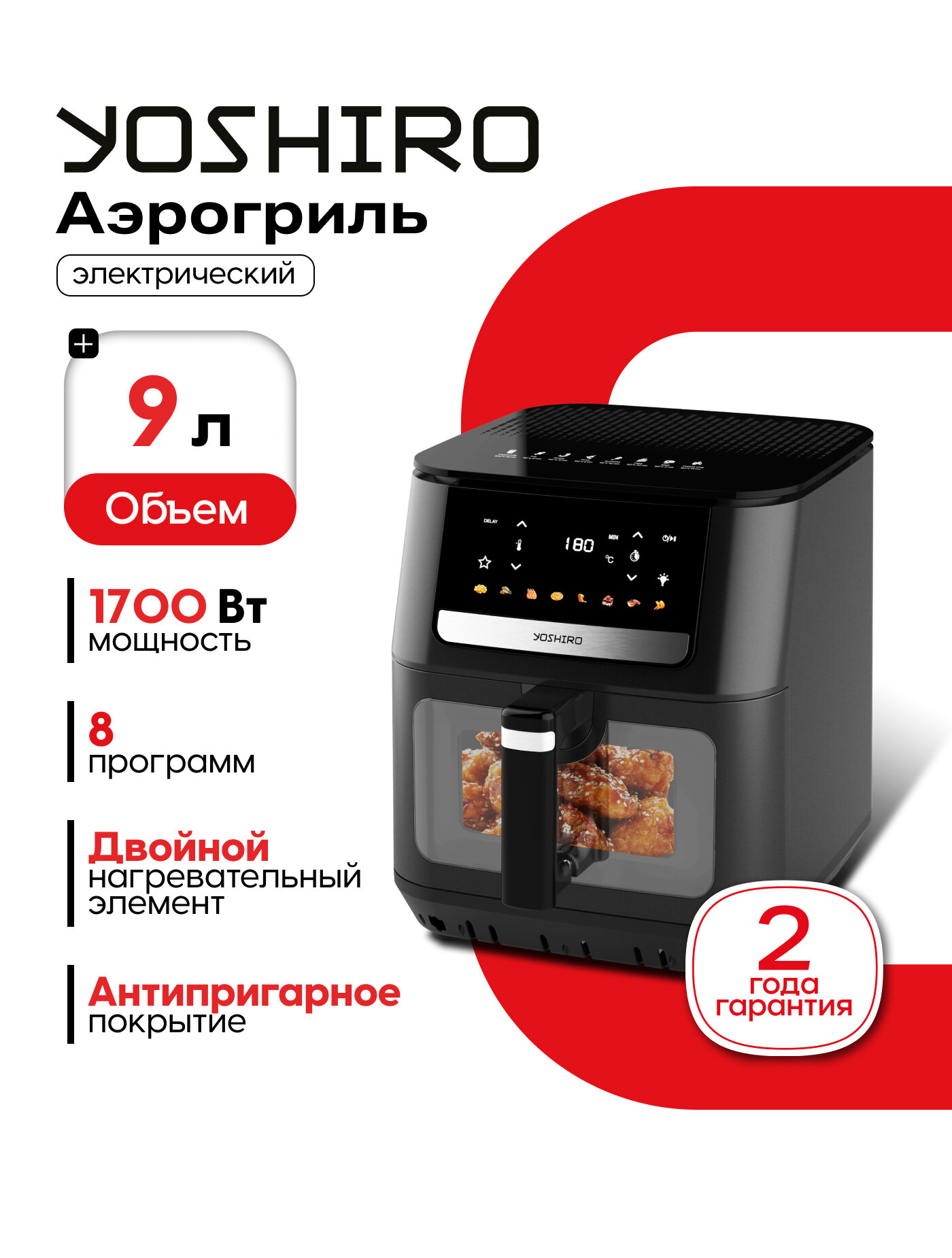 Аэрогриль электрический YOSHIRO YAF-F9010, мощность 1700Вт, электронное управление, 8 программ: сравнение цен, характеристики, фото, актуальное наличие и цены.