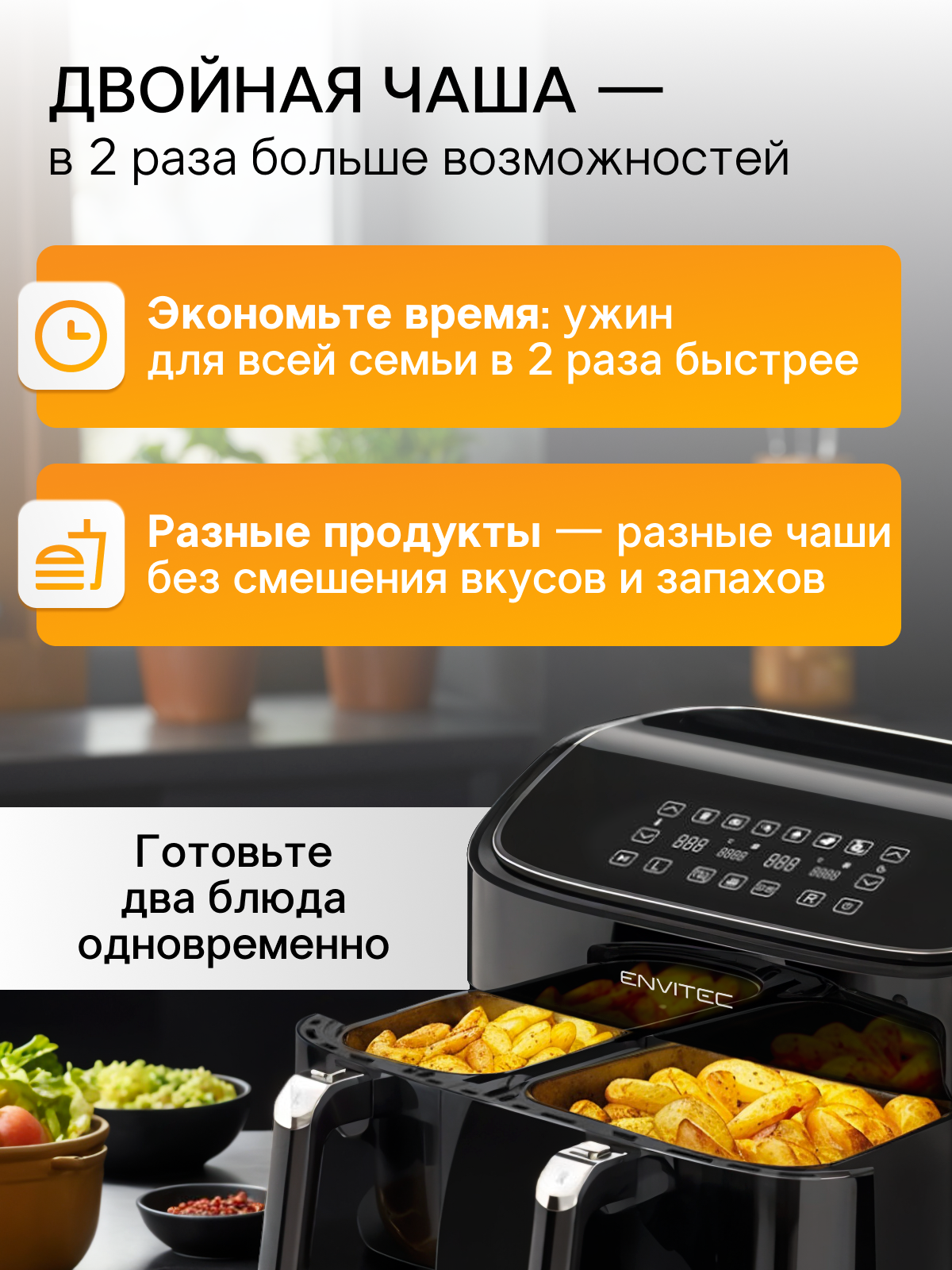 Купить Аэрогриль EnviTec Duo F11 с 2 чашами, мощность 2850 Вт, регулировка температуры и конвекции с доставкой по всей России.