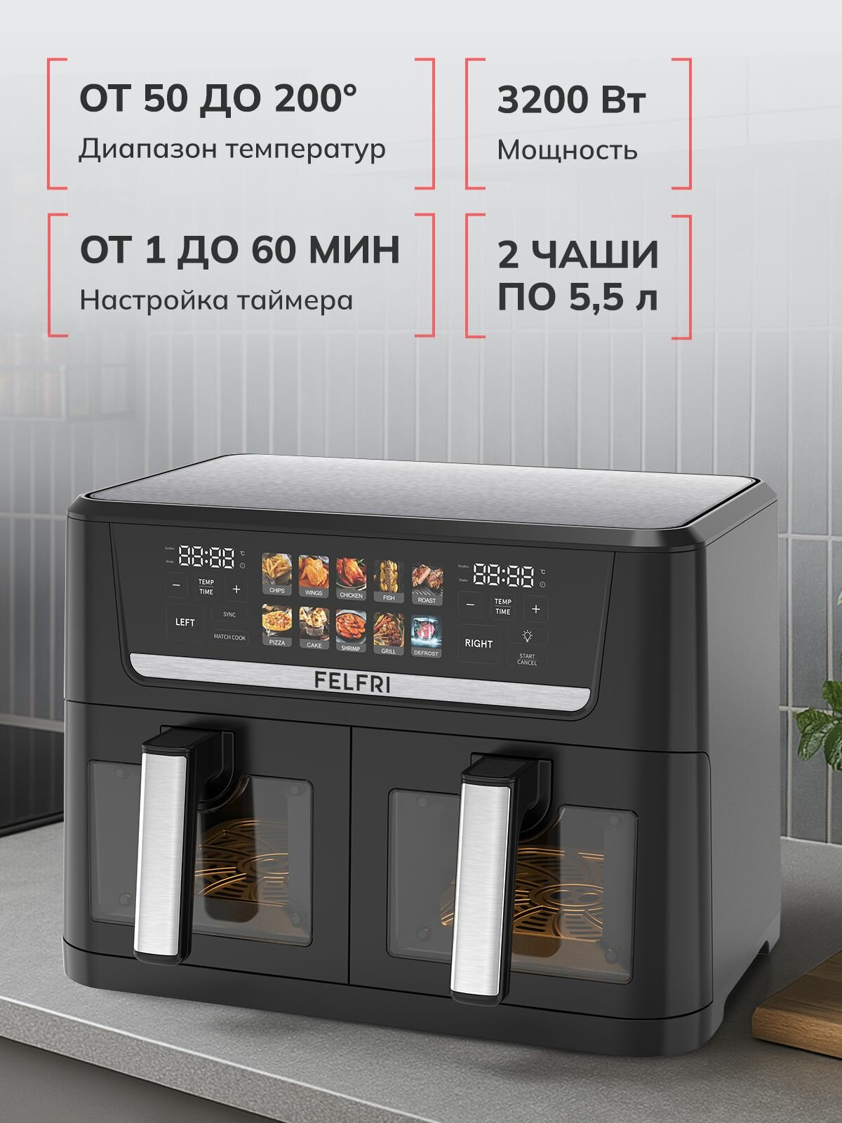 Купить Аэрогриль FELFRI 3200Вт, нержавеющая сталь, антипригарное покрытие, 5.5 л с доставкой по всей России. Аэрогриль FELFRI 3200Вт, нержавеющая сталь, антипригарное покрытие, 5.5 л: сравнение цен, характеристики, фото, актуальное наличие и цены.