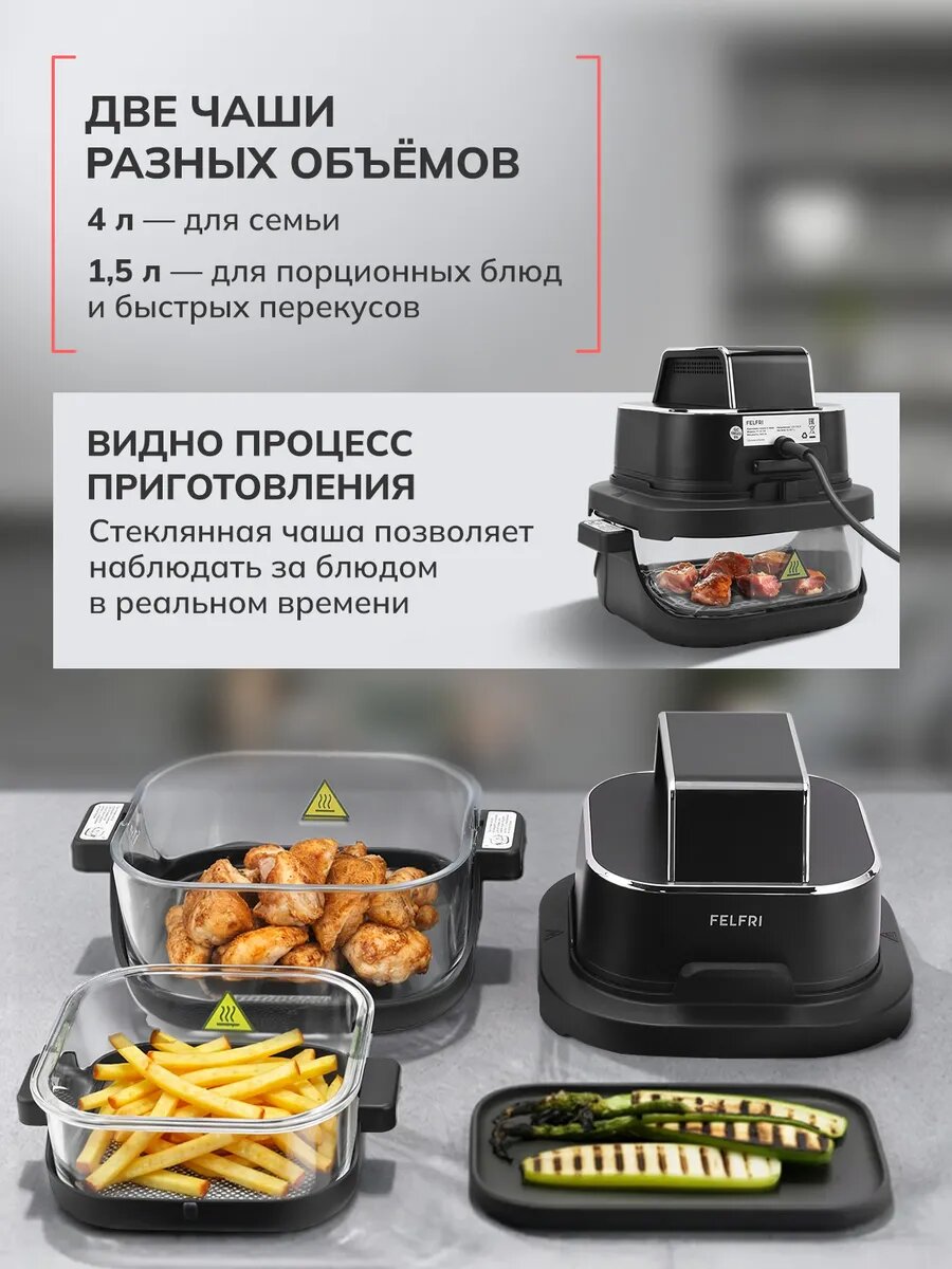 Купить Аэрогриль FELFRI, 4 программы приготовления, 1.5- и 4-литровые чаши, мощность 1500 Вт с доставкой по всей России.