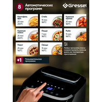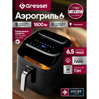 Купить Аэрогриль Gressel GAF-1823, 1800Вт, объём чаши 6.5 литров, 8 программ, сенсорный дисплей, функция пара, самоочистка с доставкой по всей России.