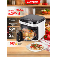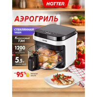 Аэрогриль HOTTER HX-533, стеклянная чаша 5,5 литров, 7 автопрограмм, регулировка времени и температуры, бело/черный: сравнение цен, характеристики, фото, актуальное наличие и цены.
