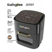 Купить Аэрогриль KARINGBEE JD989 черная, 15 л, 6 программ, 1400 Вт, закрытая спираль с доставкой по всей России.