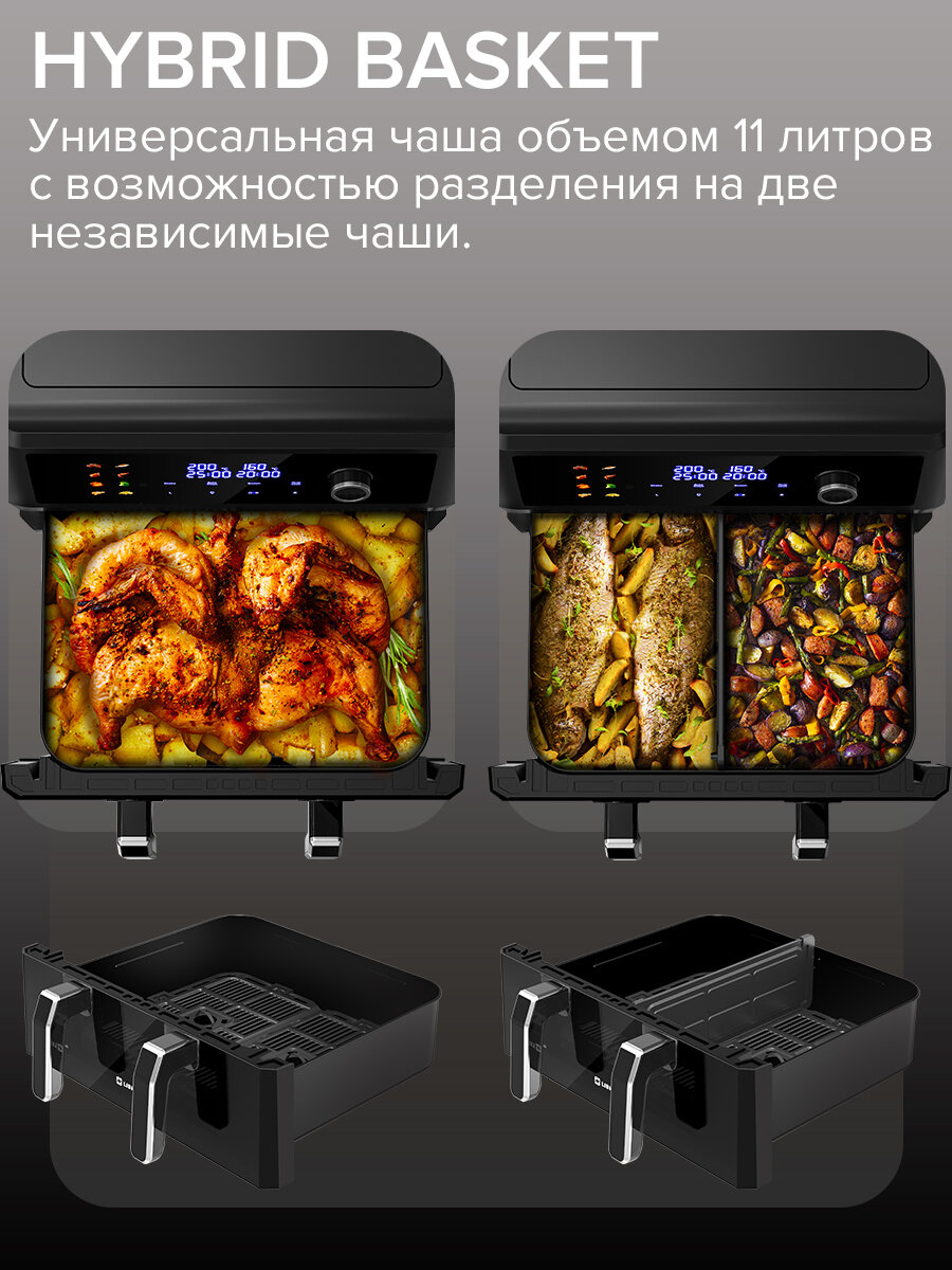 Купить Аэрогриль Libhof AFB-11D black / объем 11 литров / 8 автопрограмм / двухкамерная чаша с доставкой по всей России.