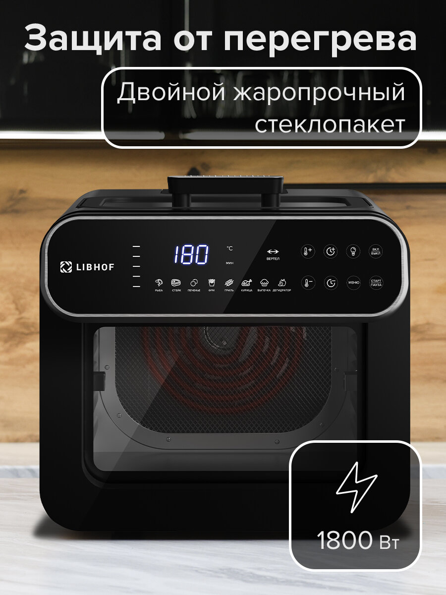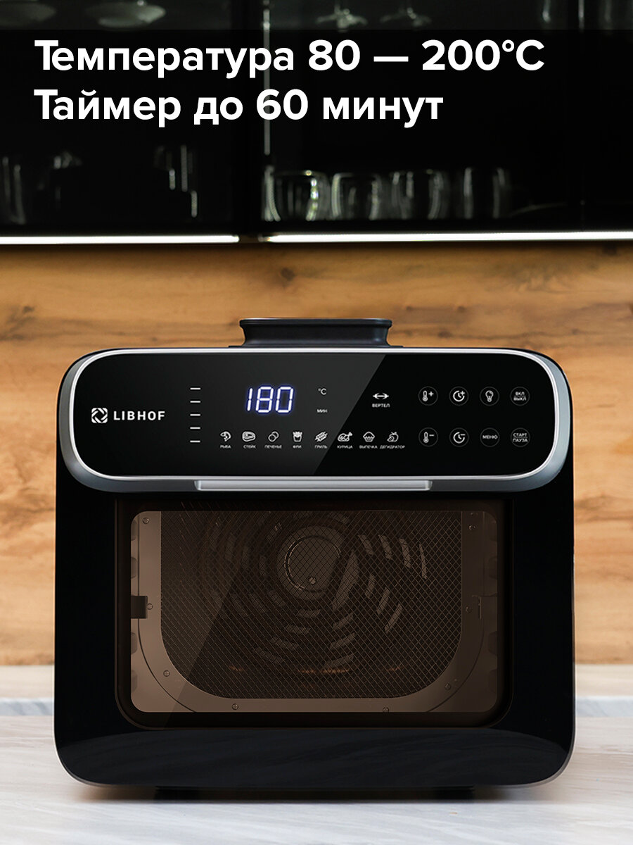 Купить Аэрогриль Libhof AFZ-14/ объем 14 литров / 8 автопрограмм / с вертелом и шашлычницей / с окном с доставкой по всей России.