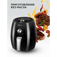 Аэрогриль-мультипечь RED RAG-246 – современный многофункциональный прибор «3 в 1» для жарки и запекания с возможностями аэрогриля, аэрофритюрницы и духовки. В RAG-246 реализована технология ускоренной конвективной обработки продуктов Turbo Cycle. Благодаря мощному потоку горячего воздуха, который непрерывно циркулирует в камере, блюда в аэрогриле готовятся в среднем в два раза быстрее, чем на плите или духовке.