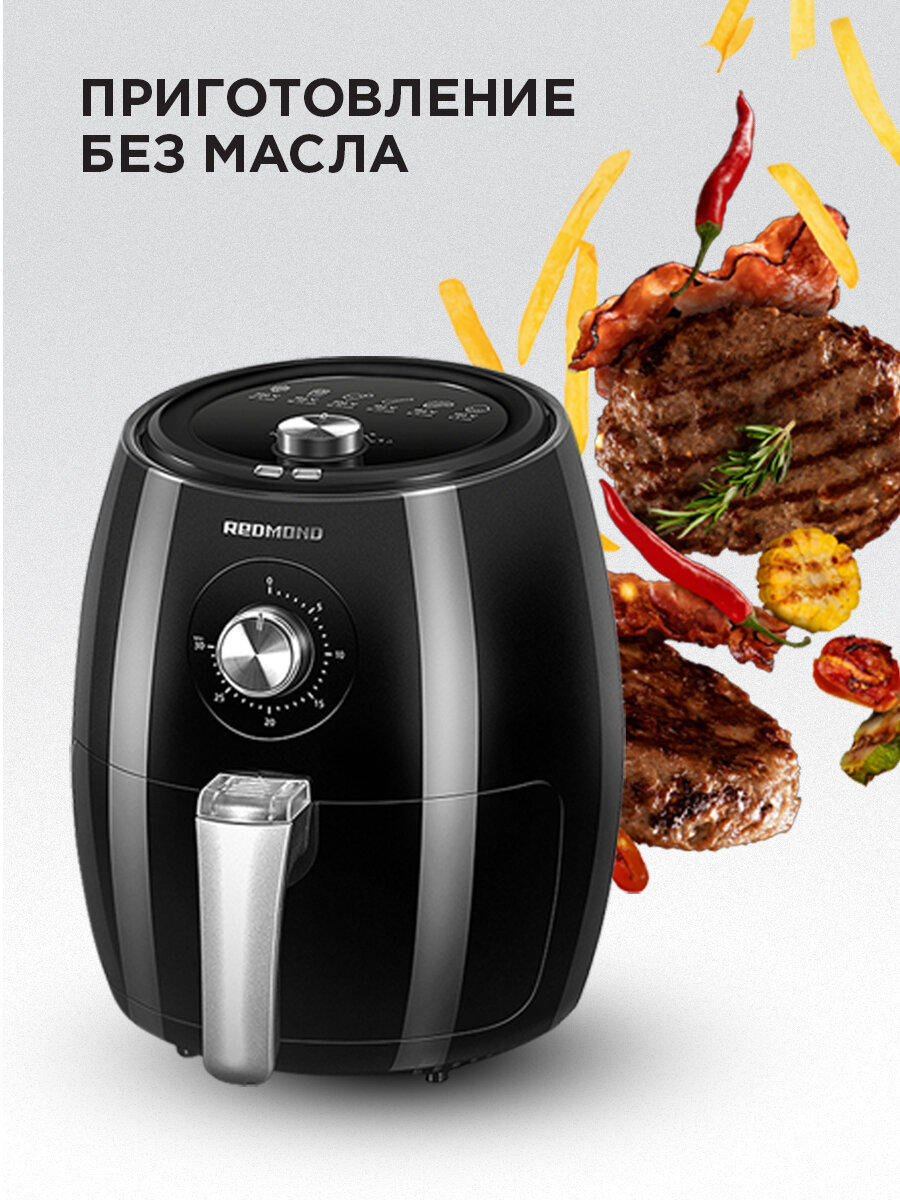 В комплект прибора входит кулинарная книга с 30-ю пошаговыми рецептами блюд, которые можно приготовить в аэрогриле. Следуйте советам профессиональных поваров RED, и результат приготовления превзойдет ожидания.