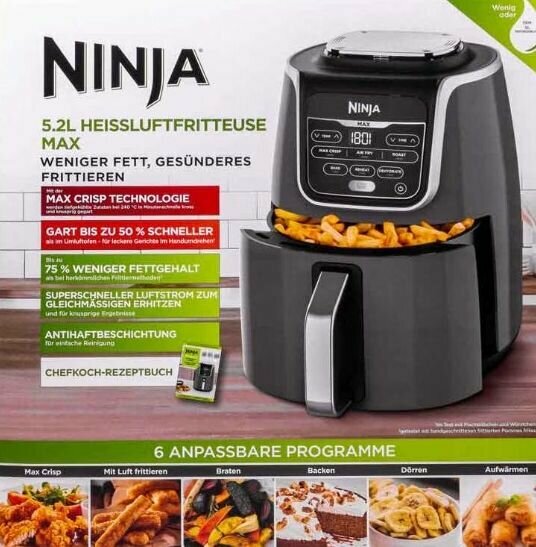 Купить Аэрогриль Ninja Air Fryer MAX AF160EU 1750 Вт 5,2 л, черный/серый с доставкой по всей России. Аэрогриль Ninja Air Fryer MAX AF160EU 1750 Вт 5,2 л, черный/серый: сравнение цен, характеристики, фото, актуальное наличие и цены.