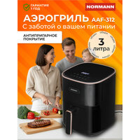 Купить Аэрогриль NORMANN AAF-312, 1200 Вт, 6 программ, регулировка температуры, таймер, чаша 3 л, черный с доставкой по всей России.