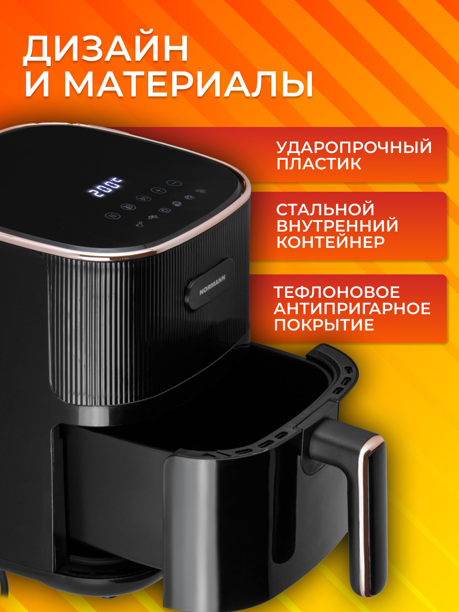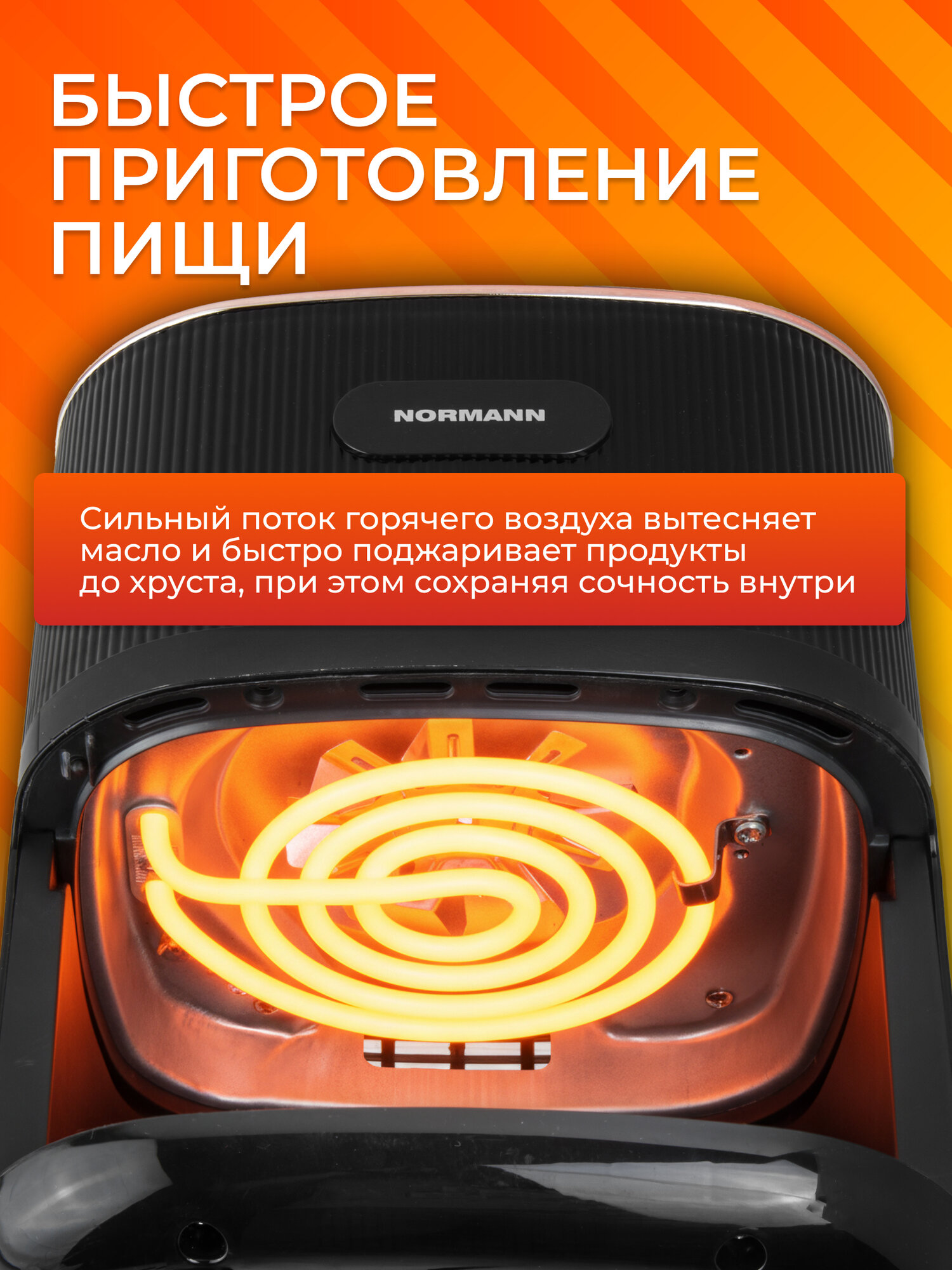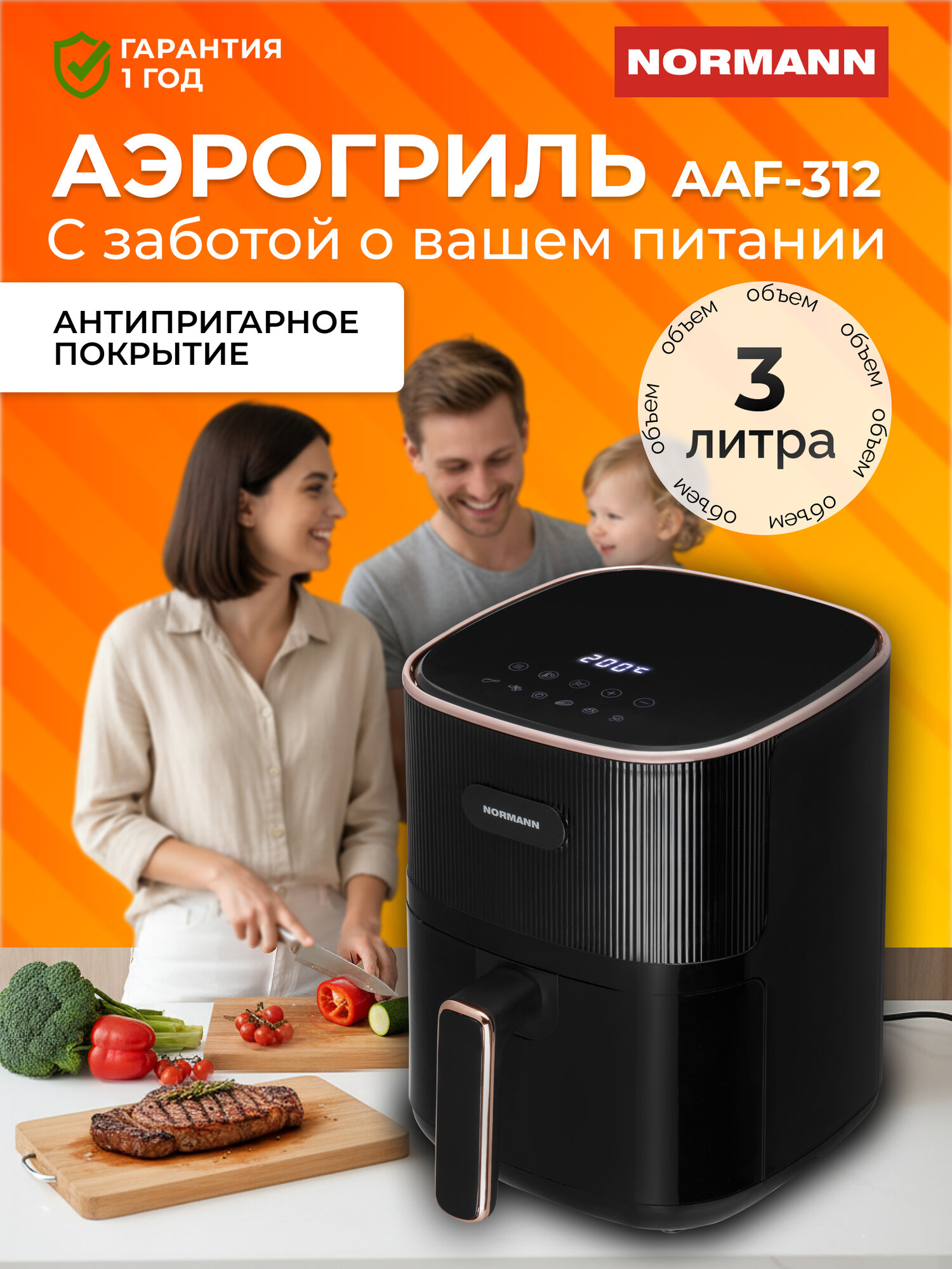 Аэрогриль NORMANN AAF-312, 1200 Вт, 6 программ, регулировка температуры, таймер, чаша 3 л, черный: сравнение цен, характеристики, фото, актуальное наличие и цены.
