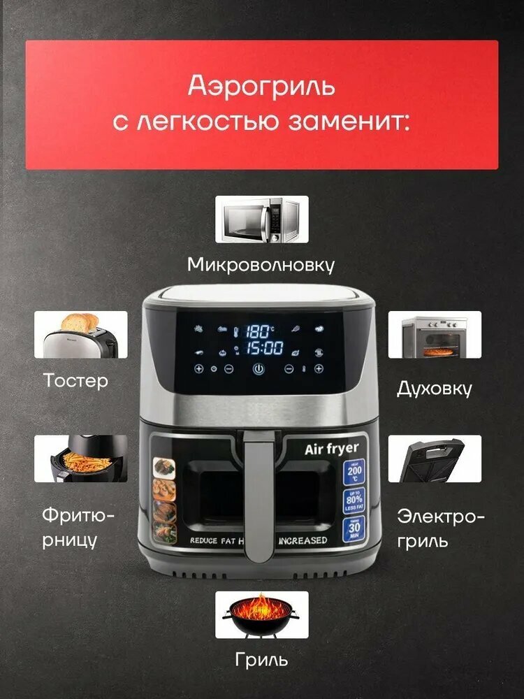 С этим кухонным прибором вы сможете значительно сократить время на приготовление пищи, а также сократить потребление масла, что делает блюда более полезными. Этот аэрогриль станет отличным вариантом для тех, кто придерживается здорового образа жизни, но не хочет отказываться от вкусной и разнообразной еды.