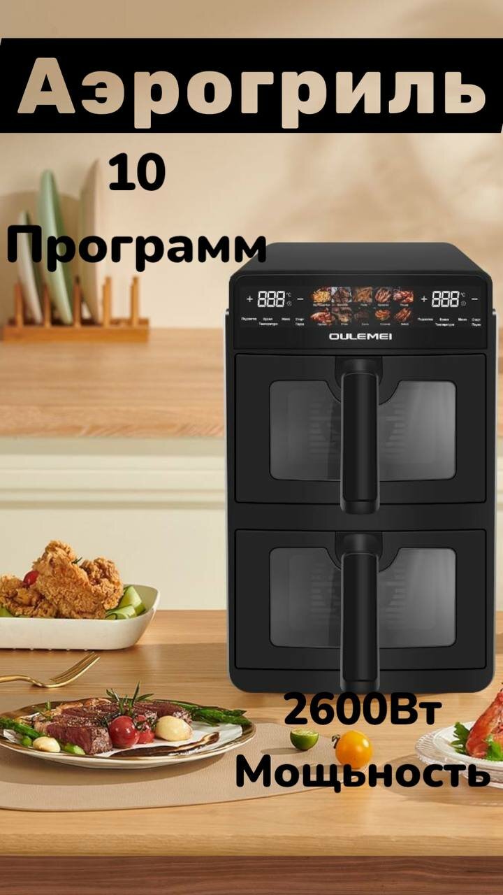 Аэрогриль OULEMEI «OLM-KZF006», 10 л, 2600 Вт, карбоновый нагреватель, электронное управление: сравнение цен, характеристики, фото, актуальное наличие и цены.