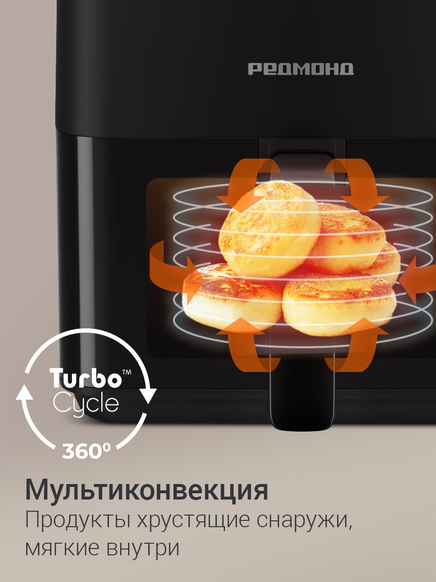 Купить Аэрогриль редмонд AG1904 конвекция, антипригарное покрытие, подсветка, таймер, 5 л, ручной режим, 8 программ, 1600Вт с доставкой по всей России.