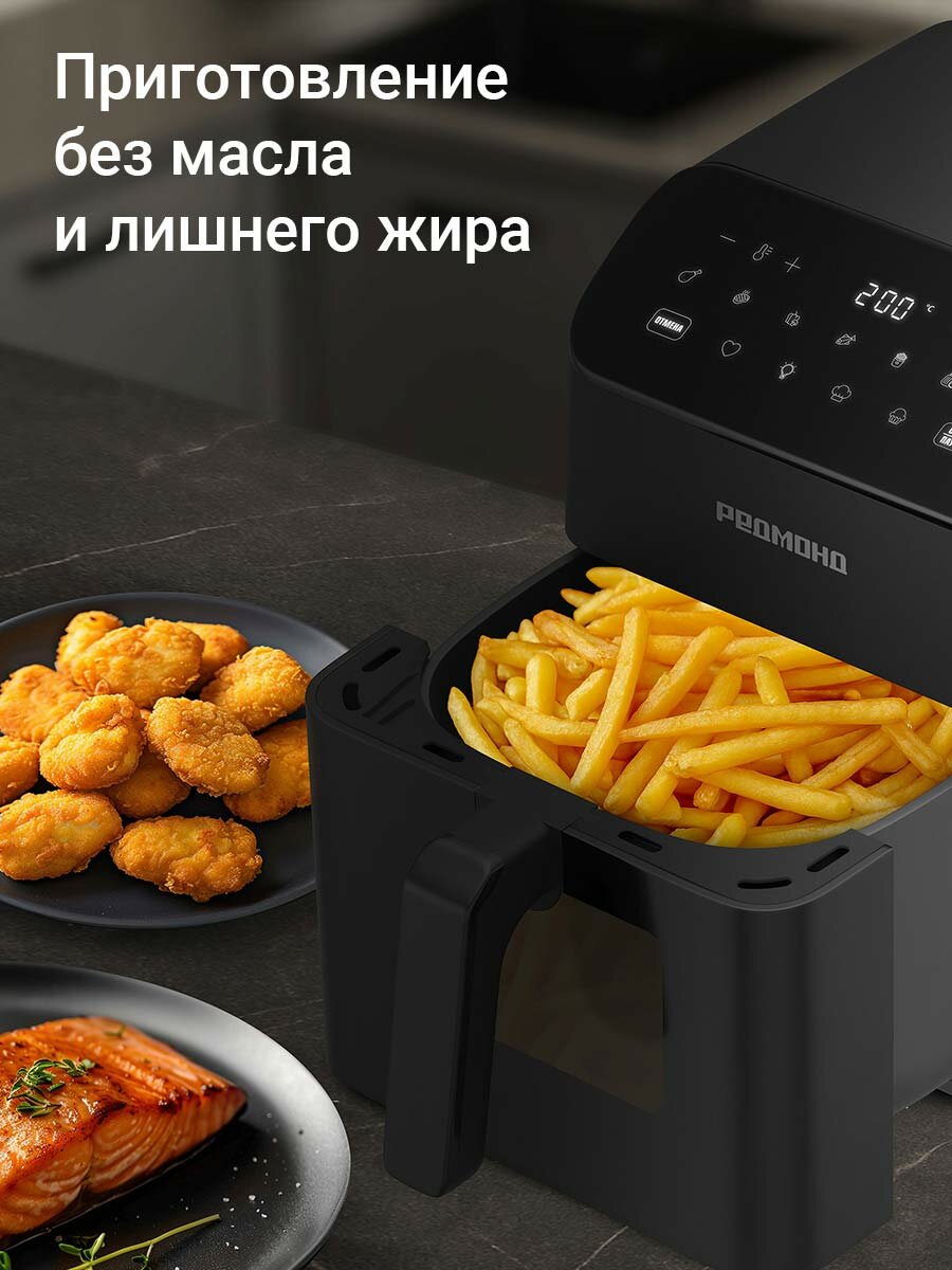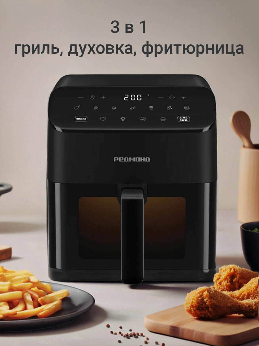 Купить Аэрогриль редмонд AG1905 конвекция, антипригарное покрытие, таймер, подсветка, 7 л, ручной режим, 8 программ, 1800Вт с доставкой по всей России.