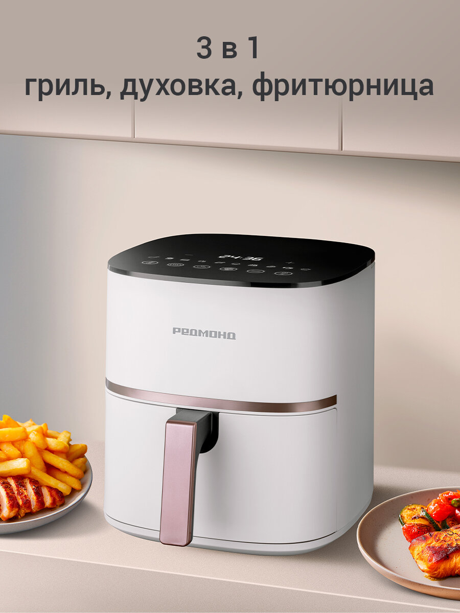 Аэрогриль редмонд AG1906, конвекция, антипригарное покрытие, разморозка, разогрев, 5 л, ручной режим, 9 программ, 1600Вт: сравнение цен, характеристики, фото, актуальное наличие и цены.
