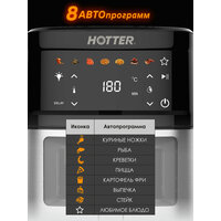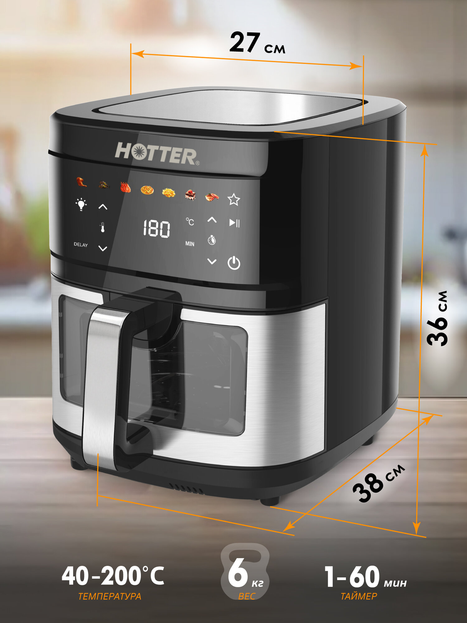Аэрогриль с двойным нагревом HOTTER HX -850, объем 8,5 л, 8 автопрограмм , мощность 2000 Вт, черный/ металл: сравнение цен, характеристики, фото, актуальное наличие и цены.