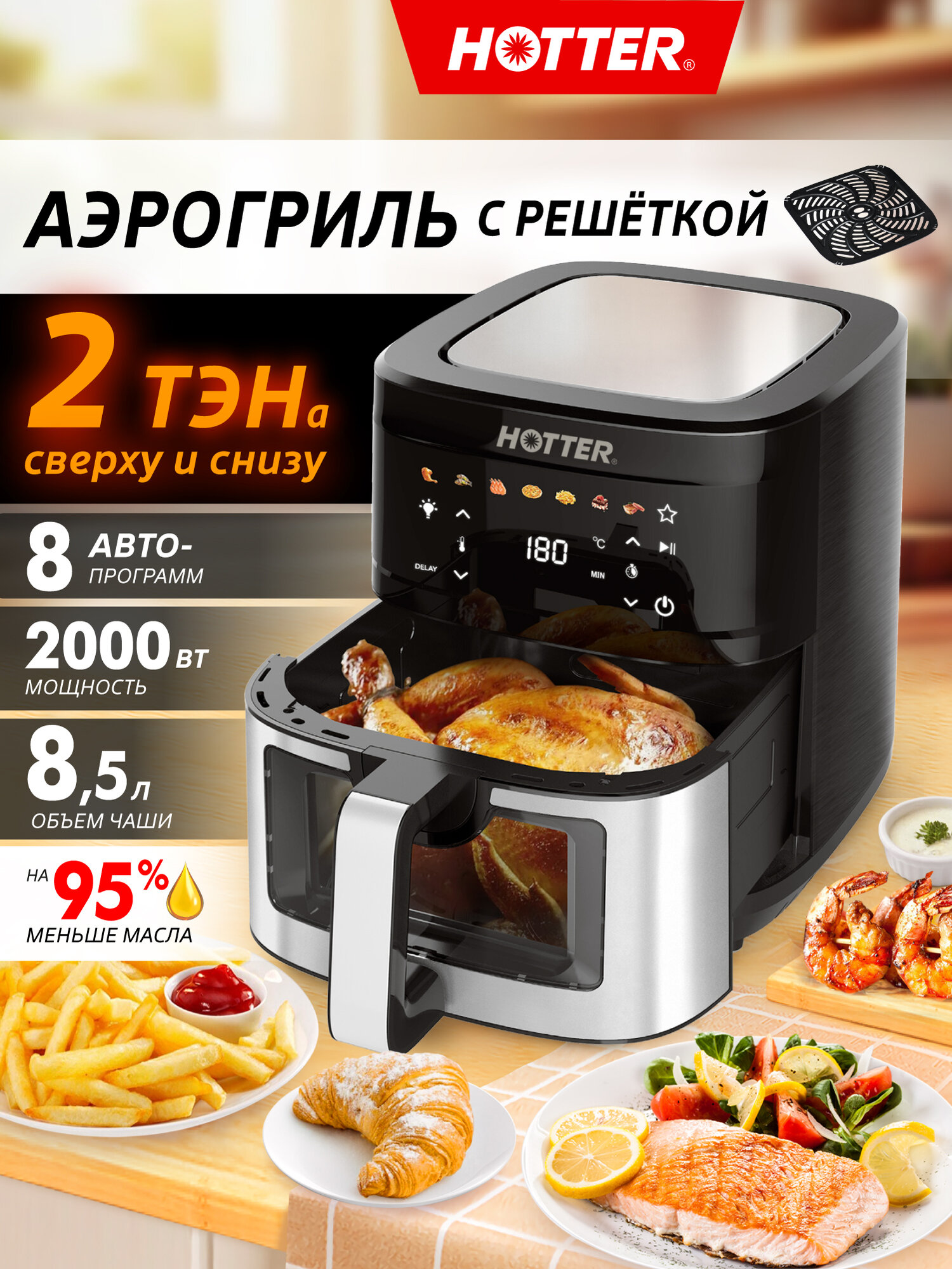 Аэрогриль с двойным нагревом (Аэрофрай) HOTTER НХ-850 совмещает в себе функции аэрогриля, духовки, гриля, тостера, стерилизатора, шашлычницы. Он точно придется по вкусу тем людям, кому нужен компактный, но в то же время многофункциональный прибор. Идеально подойдёт как для дома, так и для дачи.