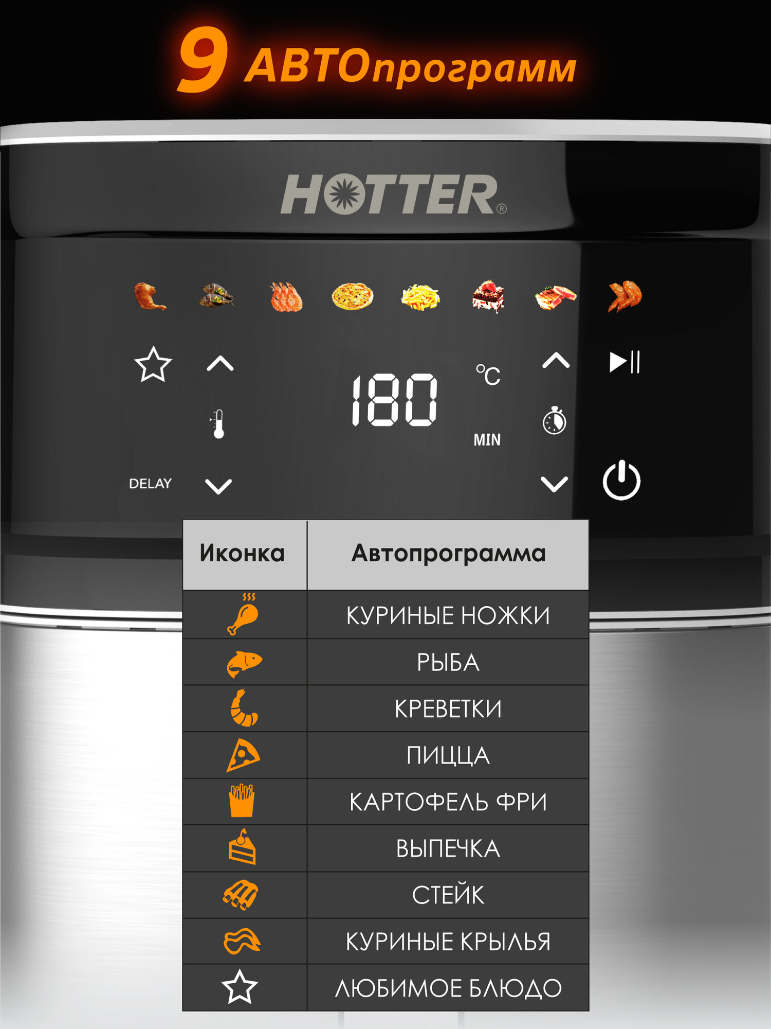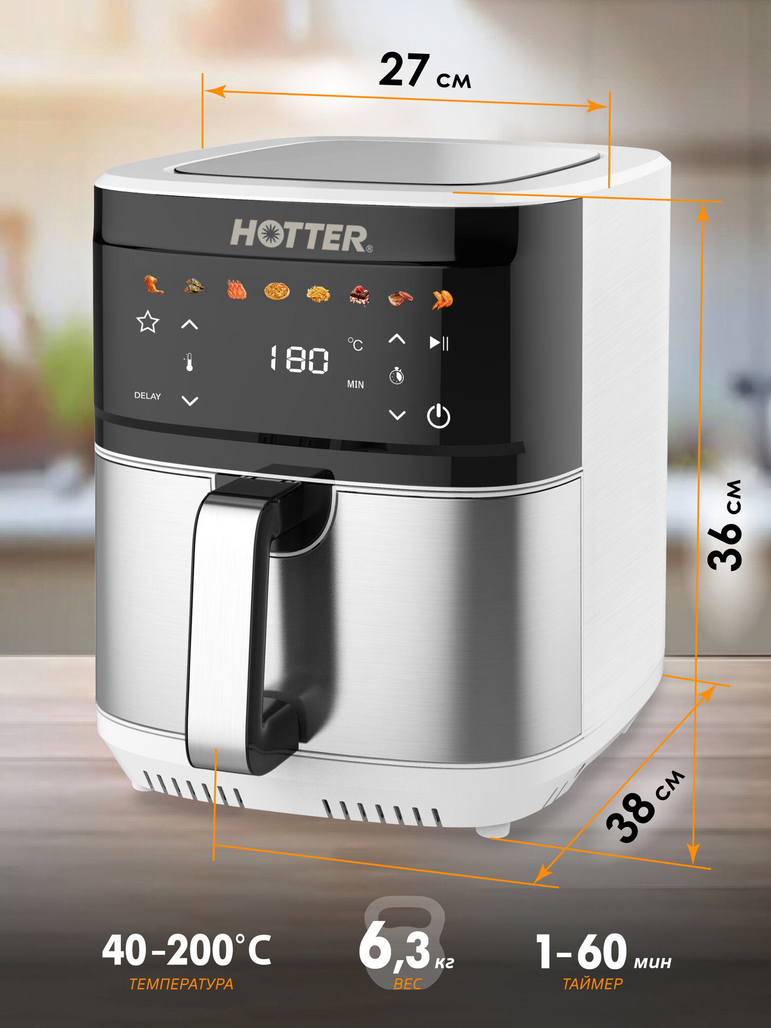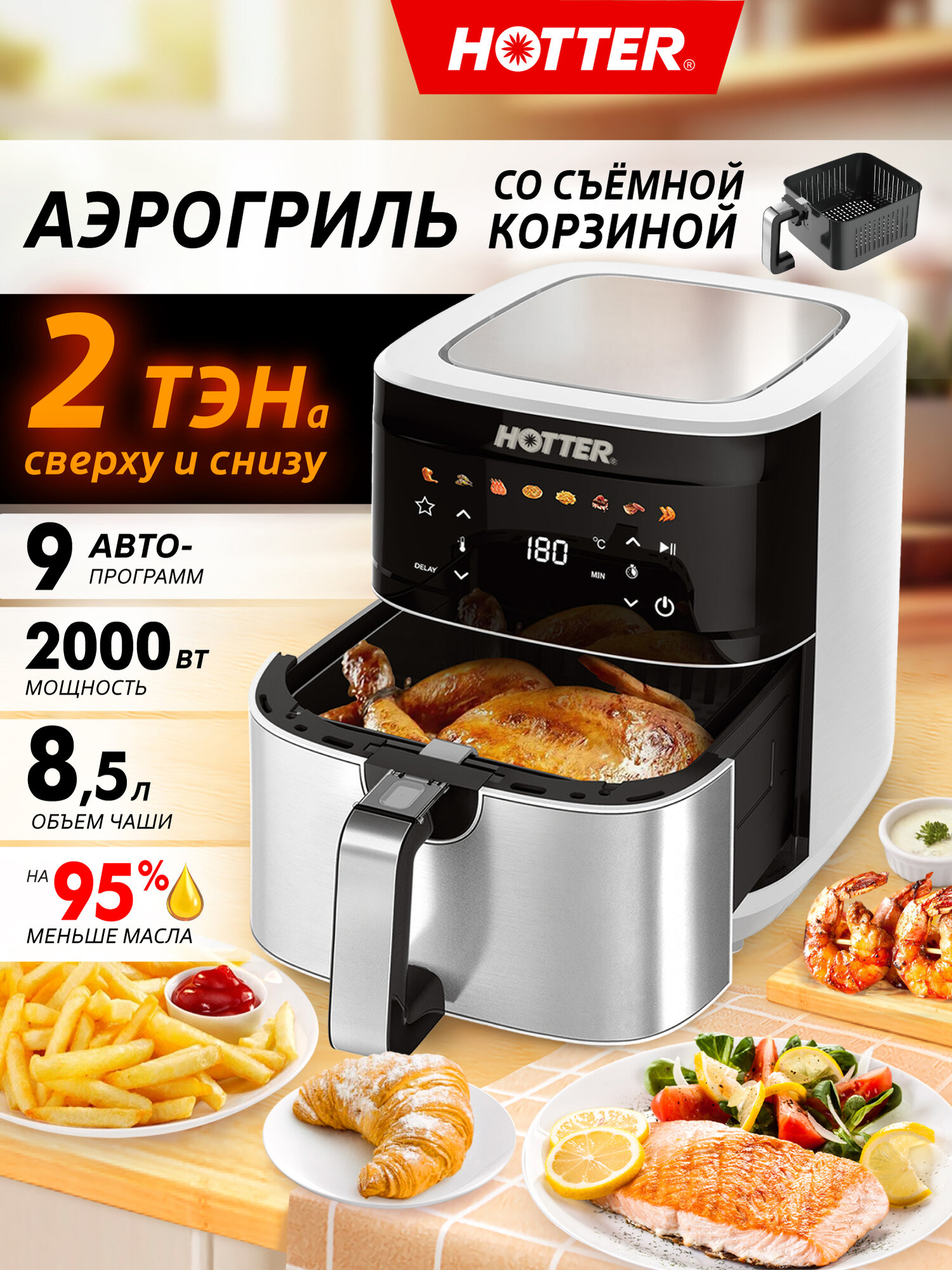 Аэрогриль с двойным нагревом HOTTER HX-851, объем 8,5 л, 9 автопрограмм , мощность 2000 Вт, белый/ металл: сравнение цен, характеристики, фото, актуальное наличие и цены.