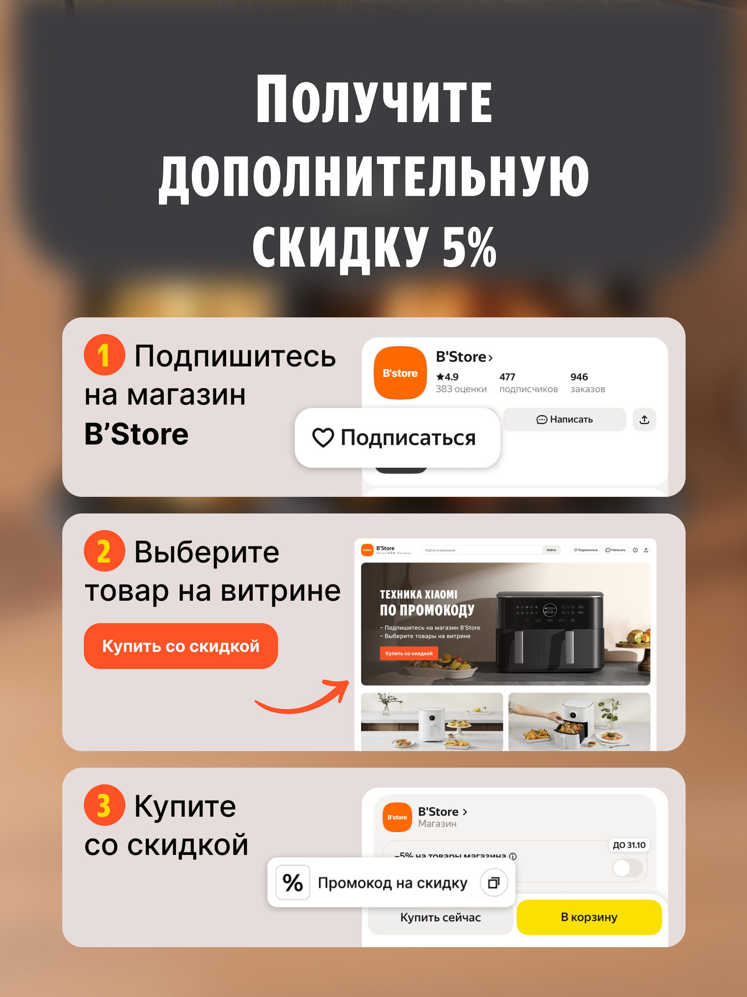 Отсканируйте QR-код* на аэрофритюрнице, чтобы получить доступ к 101 популярному рецепту. Готовьте потрясающие блюда под руководством профессионалов.