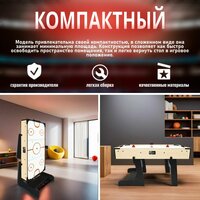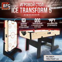 Стол ICE Transform разработаны и изготовлены специалистами инженерами компании Start Line PLAY. Самая важная деталь аэрохоккея это - игровое поле. От качества и метода производства этой детали зависит, насколько интересно, захватывающе и увлекательно будет проходить игры. В наших игровых полях применены сразу две новейшие технологии, разработанные инженерами и технологами компании Start Line PLAY. 3d layer Поверхность игрового поля состоит из 3 слоев, поочередно соединенных друг с другом. Данный метод позволяет нанести разметку между вторым и третьим слоем, что исключает истирание нанесенного изображения во время всего срока службы. Кроме того используемые материалы обеспечивают длительный период эксплуатации и улучшают скольжение шайбы. Smart Flow. Благодаря уникальной системе распределения воздушного потока, вентилятор, питающийся от сети 220 вольт нагнетаете воздух по всей игровой поверхности, исключая появление мертвых зон во время игры.Шайба скользит как на профессиональном оборудовании. Игровой стол обладает устойчивой конструкцией, что исключает любые раскачивания во время игры. Производимый нами аэрохоккей на 90% состоит из отечественных комплектующих, а это дает возможность быстрого и качественного сервисного обслуживания. Каждый стол оборудован удобными механическими счетами, в комплекте поставляется 2 биты и 4 шайбы. Упаковка имеет жесткое дно, что повышает сохранность товара во время хранения или транспортировки. Прежде всего Аэрохоккей - это динамичная и очень интересная игра для детей и взрослых. Вам не нужно обладать какими-то навыками, чтоб научиться играть в эту игру. Настольная игра положительно влияет на здоровье как взрослых, так и детей: улучшает координацию и скоростную реакцию, дарит массу положительных эмоций, развивает и тонизирует все группы мышц. Попробовав поиграть в аэрохоккей хоть один раз, вы несомненно полюбите эту игру, так как она дарит только положительные и яркие эмоции. Проводить любые мероприятия и праздники у себя дома станет намного веселее, имея у себя дома аэрохоккей.Аэрохоккей — настольная игра с участием двух игроков. Цель игры — забить шайбу в ворота противника. Для игры необходимы стол для аэрохоккея, две специальные биты и шайба. Типичный стол для аэрохоккея — это большая гладкая игровая поверхность, окруженная бортиком, предотвращающим падение шайбы и бит. По краям стола расположены щели, выполняющие роль ворот. Позади ворот или под ними находятся отверстия, через которые возвращается забитая шайба. Через небольшие дырочки на игровой поверхности создаётся циркуляция воздуха, уменьшающая трение и тем самым увеличивающая скорость игры.