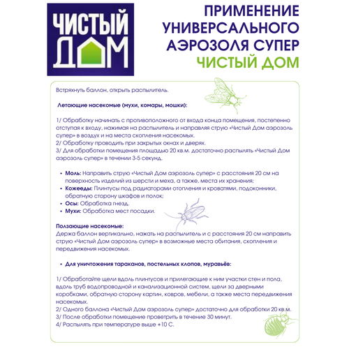 2/ Одного баллона «Чистый Дом аэрозоль супер» достаточно для обработки 20 кв. м.