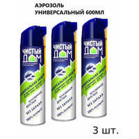 Купить Аэрозоль от насекомых «Чистый дом» 600мл Универсальный 3 флакона с доставкой по всей России. Аэрозоль от насекомых «Чистый дом» 600мл Универсальный 3 флакона: сравнение цен, характеристики, фото, актуальное наличие и цены.