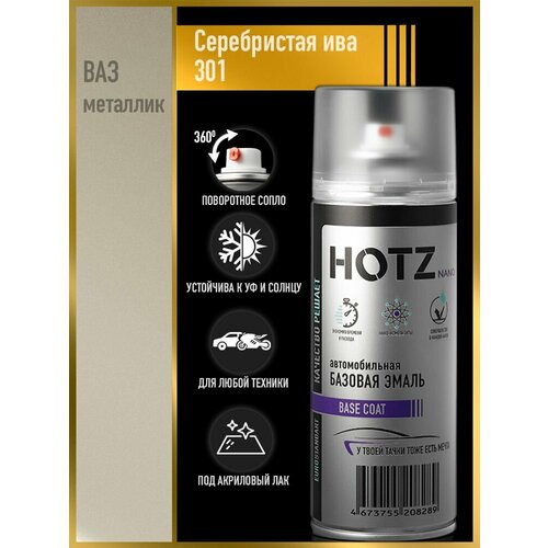 Аэрозольная краска 1K «Серебристая Ива 301» металлик 520 мл, HOTZ, базовая автомобильная ремонтная эмаль