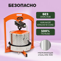 Поддон пресса Affe выполнен из пищевой нержавеющей стали AISI 430. Сталь устойчива к фруктовым кислотам и разрешена для пищевого применения.