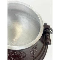 Афганский казан - это объемный чугунок, где под повышенным давлением блюда готовятся быстрее, чем обычным способом. Модель круглой формы имеет большой объем (15 литров), подойдет для приготовления еды на 10-14 персон. Афганский казанок Наманган из пищевого алюминия заменяет высокую металлическую кастрюлю или котелок, пароварку и скороварку. Удобный кухонный инвентарь отличает простое и быстрое приготовление блюд с закладкой ингредиентов в начале процесса, сохранение всех витаминов благодаря равномерному прогреву и тушению продуктов без пригорания. Хорошо сохраняющая тепло жаропрочная утварь выполнена с плоским дном и толстыми стенками, подвижными ручками, с аварийным клапаном для исключения срыва крышки и надежным замком для плотной фиксации затвора к корпусу. Она подходит для варочной поверхности газовых, индукционных и электрических плит (электроплит), для духовки и открытого огня на улице (костер на дровах), мангала и печки. Выбирайте казан фирмы Рашко Баба для тушения мяса и варки супа, приготовления узбекского плова для семейного ужина, готовки лагмана и жарки овощей, других вкусных блюд по рецептам восточной кухни. Изделие будет полезно для использования в домашних, дачных и уличных, туристических и походных, а также ресторанных условиях, во время туризма и отдыха на природе, в кемпинге, на даче, на охоте или рыбалке. Огнеупорная костровая посуда - это украшение вашей кухни и отличный подарочный вариант для взрослого мужчины и женщины, милый знак внимания для мамы и бабушки в любой женский праздник. В линейке бренда представлены качественные и стильные чугунный казаны разного объема. Товар дополнен фирменным клеймом, упакован в оригинальную коробку с инструкцией.