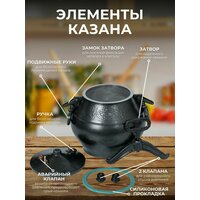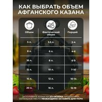 Хорошо сохраняющая тепло жаропрочная утварь выполнена с плоским дном и толстыми стенками, подвижными ручками, с аварийным клапаном для исключения срыва крышки и надежным замком для плотной фиксации затвора к корпусу. Она подходит для варочной поверхности газовых, индукционных и электрических плит (электроплит), для духовки и открытого огня на улице (костер на дровах), мангала и печки. Выбирайте казан фирмы RASHKO BABA для тушения мяса и варки супа, приготовления узбекского плова для семейного ужина, готовки лагмана и жарки овощей, других вкусных блюд по рецептам восточной кухни. Изделие будет полезно для использования в домашних, дачных и уличных, туристических и походных, а также ресторанных условиях, во время туризма и отдыха на природе, в кемпинге, на даче, на охоте или рыбалке. Огнеупорная костровая посуда - это украшение вашей кухни и отличный подарочный вариант для взрослого мужчины и женщины, милый знак внимания для мамы и бабушки в любой женский праздник