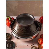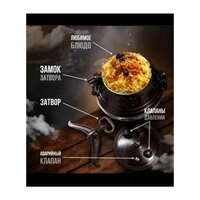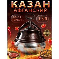 Двухцветный афганский казан скороварка Khan Baba – это красивая традиционная посуда из Афганистана (оригинал), которая поможем быстро приготовить вкусные и полезные блюда. Прогрев внутри осуществляется равномерно, еда не пригорает, как и при использовании посуды с антипригарным покрытием, получается вкусной и ароматной. Подходит для приготовления вкуснейшего плова, супа, жарки и тушения мяса и овощей. Алюминиевый казан имеет небольшой вес и является незаменимым помощником в туризме походной кухне или уличном использовании – посуда идеальна для туристического похода, дачного отдыха, кемпинга, рыбалки, охоты. На природе, можно использовать с подставкой под казан - треногой. Также, казанок отлично подходит для домашнего использования на газовых, электрических плитах, газовых плитках. Его можно использовать как казан, котелок, скороварку, пароварку. Готовить можно с использованием металлических приборов шумовок и половников и другой утвари. Он может заменить привычные сковороды и кастрюли. Оснащен подвижными ручками для безопасного перемещения, имеет 3 клапана (2 рабочих и один аварийный), который предотвращает срыв крышки и надежным замком для плотной фиксации затвора к корпусу. В крышке установлена уплотнительная резиновая оригинальная прокладка. Снаружи казан окрашен жаропрочной краской. Плоское дно, диаметром 20 см, позволяет готовить на варочных поверхностях, но на индукционной плите возможно использование только со специальным адаптером. Обратите внимание, что фактический объем казана меньше, информацию об этом Вы можете найти в соответствующем фото. Полезный объём казана 65-80%, при загрузке более этой нормы возникает вероятность засорения клапана. Подходит до 10-14 персон. Казан — это отличный подарок!
