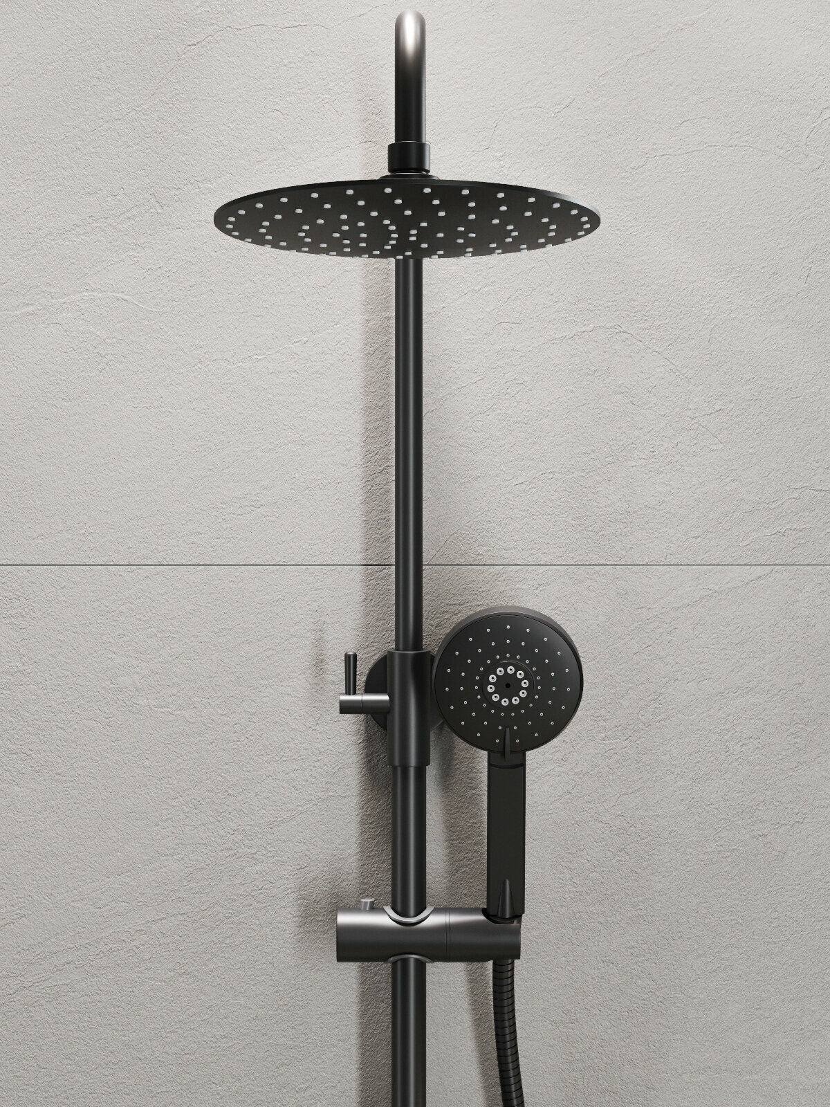 Душевая система Agger Brilliant прекрасно дополнит интерьер ванной комнаты в современном стиле: поворотный излив (16,4 см), телескопическая штанга (945-1390 мм), верхний душ d 225 мм с регулировкой угла наклона и силиконовыми наконечниками (с защитой от известкового налета), ручной душ 120 мм (5 режимов), регулируемый по высоте и наклону держатель ручного душа, шланг 150 см. с защитой от перекручивания (в металлической оплетке), смеситель с керамическим картриджем (переключение на душ - поворотом излива). Цвет матовый черный.