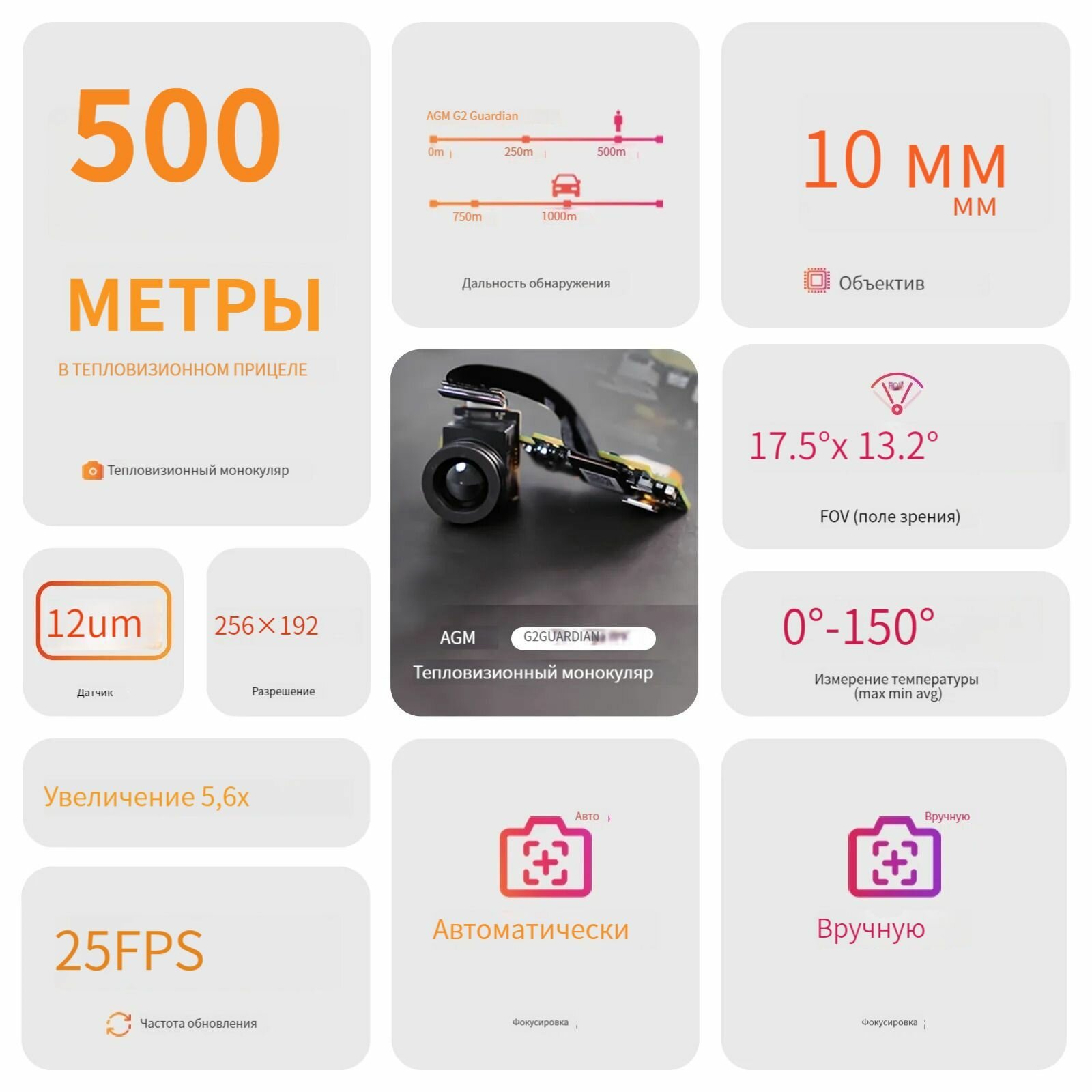 | Характеристики основной камеры | обладает тепловизором 0.05 Мп, 12 мкм, ФР 10 мм, f/1,0 |