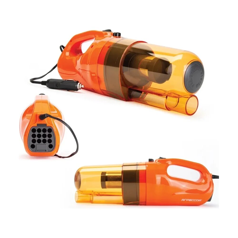 12V, cyclonic action, в комплекте идут 2 насадки и гибкий шланг, моющийся фильтр из нержавеющей стали, многоразовый моющийся стальной фильтр. Пылесос работает от автомобильного прикуривателя (12 В).