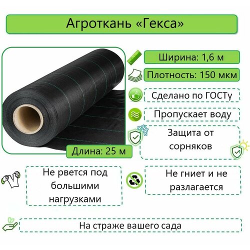 Купить Агроткань от сорняков и для ландшафтных работ, Агротекс Гекса 150 мкм, 1,6 х 25 м с доставкой по всей России. Агроткань от сорняков и для ландшафтных работ, Агротекс Гекса 150 мкм, 1,6 х 25 м: сравнение цен, характеристики, фото, актуальное наличие и цены.