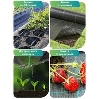 Агроткань от сорняков с УФ стабилизацией - группа садовых материалов, предназначенная для защиты растений от воздействий окружающей среды (солнечных лучей, низкой температуры, ветра), вредителей, а так же для укрытия почвы под растениями с целью сохранить в ней влагу и воспрепятствовать росту сорняков и появления гнилей. Застилочная агроткань черного цвета с разметкой хорошо пропускает воду(жидкие удобрения) и воздух. Зимой агроткань из полипропилена защитит корневые системы многолетних растений от вымерзания. Летом агроткань для клубники с отверстиями и удобной разметкой обеспечит защиту от вредителей, сильного ветра и палящего солнца. Агроткань черная с разметкой активно используется в строительстве, ландшафтных работах для разделения слоев. Пропускает воду и воздух, не дает ультрафиолету попадать на грунт, в результате в летнее время сохраняется больше влаги, исключается перегрев. Покров от сорняков применяют и в теплицах. Геотекстиль помогает защитить овощные и фруктовые культуры, а также служит для мульчирования почвы. Несмотря на то, что пленка мульчирующая обладает повышенной плотностью, под ней не происходит процесс гниения и не возникает плесень. Агротекстиль поддерживает оптимальный микроклимат в грунте, из-за чего растения полностью получают требуемые полезные вещества необходимые для плодоношения и быстрого произрастания. Укрывной материал для огорода станет просто незаменимым при выращивании рассады в огороде, саженцев клубники в саду и различных растений в теплице. Агроткань застилочная с разметкой будет активно использоваться и принесет огромную пользу. Важно: при резке требует запайки края, например, зажигалкой, чтобы волокна не распускались. Удобно резать паяльником. Рекомендуем использовать скобы-крепления. Данный артикул агроткани российского производства. В нашем магазине также имеется агроткань производства Беларусь