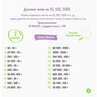 Автор пособия предлагает заниматься со школьником по 15-30 минут на протяжении 21 дня. За это время удается автоматизировать навык быстрого умножения и деления в уме и письменно. В блокноте есть математические лабиринты, числовые ребусы, кроссворды и пазлы. Ребенок расставляет знаки, сравнивает числа, находит ошибки. Всего разработано 15 типов упражнений.