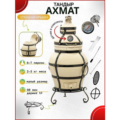 Ахмат с откидной крышкой — тандыр для дачи маленький с термометром (требует установки) — 30 л, Технокерамика.: сравнение цен, характеристики, фото, актуальное наличие и цены.