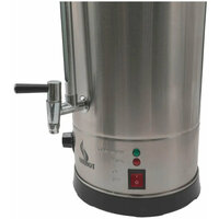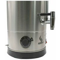 Кипятильник Airhot WBD-15 относится к профессиональному тепловому оборудованию и используется в заведениях общепита, торговли, гостиничного бизнеса, общественного назначения, офисах. Он позволяет за короткое время получить значительный объем воды необходимой температуры. Кипятильник незаменим при организации банкетов, выездных мероприятий, кофе-брейков, на линиях раздачи питания в школах, больницах, производственных столовых. Прибор имеет корпус цилиндрической формы из нержавеющей стали. За счет двойных стенок он абсолютно безопасен для потребителей. Корпус установлен на круглом пластиковом основании с небольшими ножками. Сверху он плотно закрывается крышкой из стали и пластиковой ручкой. На боковых поверхностях корпуса также установлены пластиковые ручки для переноски прибора. В нижней части корпуса находится кран для розлива горячей воды, кнопка питания с индикаторами, регулятор температуры нагрева. Над краном расположен индикатор уровня воды в виде прозрачной трубки.