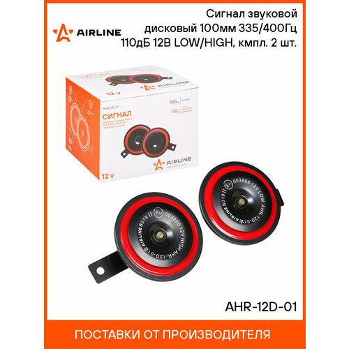 Комплект из двух автомобильных сигналов AHR-12D-01 от бренда AIRLINE. Могут устанавливаться в замен штатного сигнала или в качестве дополнения.