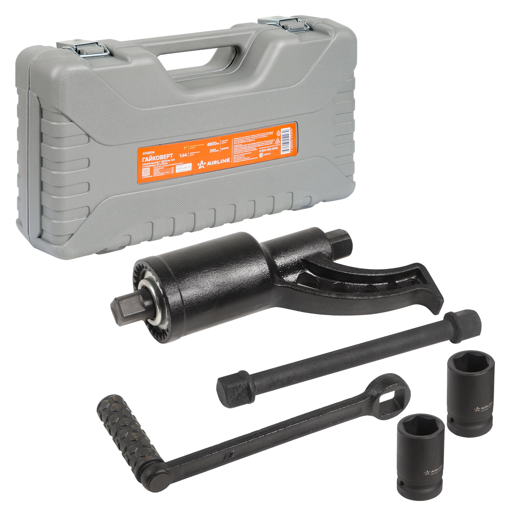 Купить Airline гайковерт механич. 1 4800нм 164 310мм с головками 32 и 33мм пласт. кейс atab104 с доставкой по всей России.