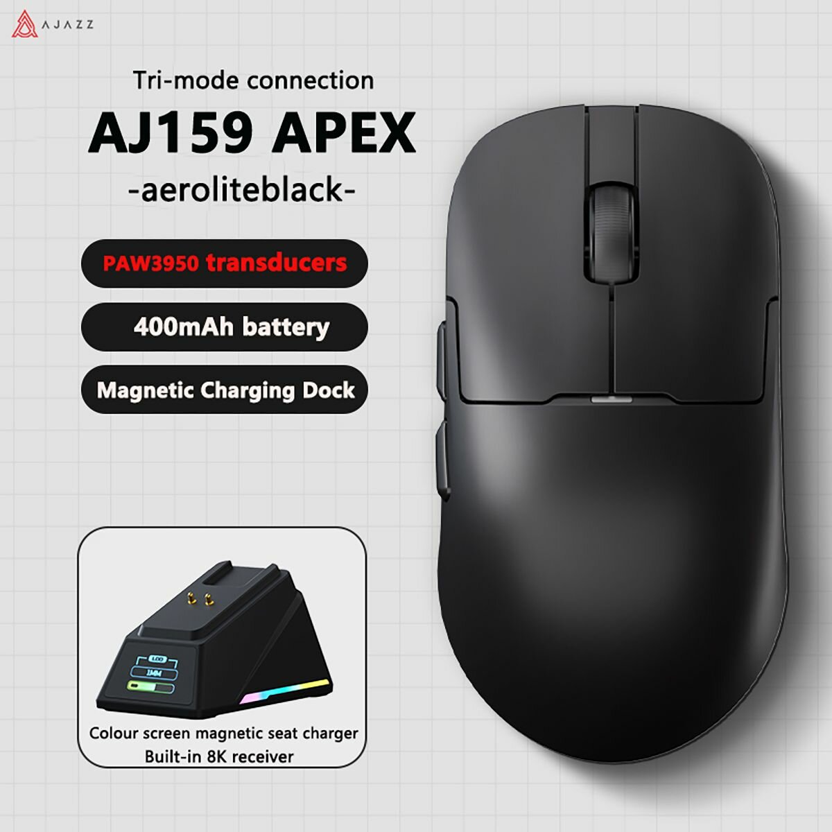 AJAZZ AJ159APEX Трехрежимный черный (с цветным экраном, магнитной подставкой, зарядным устройством, встроенным приемом 8K): сравнение цен, характеристики, фото, актуальное наличие и цены.