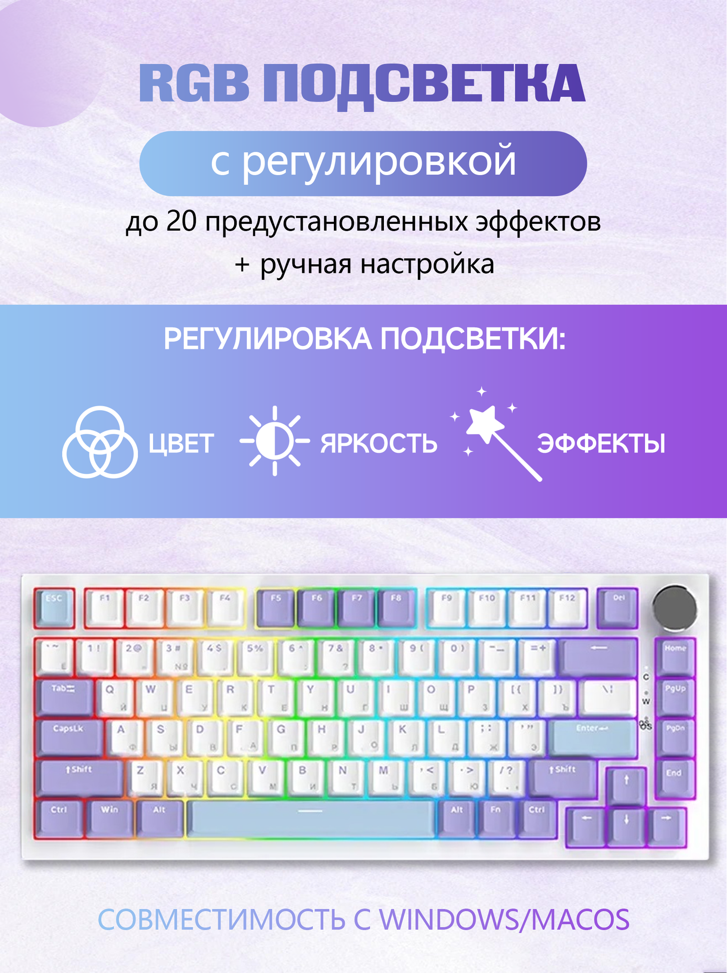 Купить Ajazz AK820 Клавиатура проводная , RGB-подсветка, Русская раскладка, Sea salt switch, сиреневый, лазурный с доставкой по всей России.