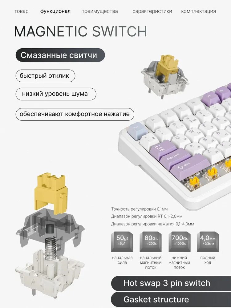 AJAZZ AK820 MAX Профессиональная игровая механическая клавиатура Проводной USB-C, Magnetic Switch, Русская раскладка: сравнение цен, характеристики, фото, актуальное наличие и цены.