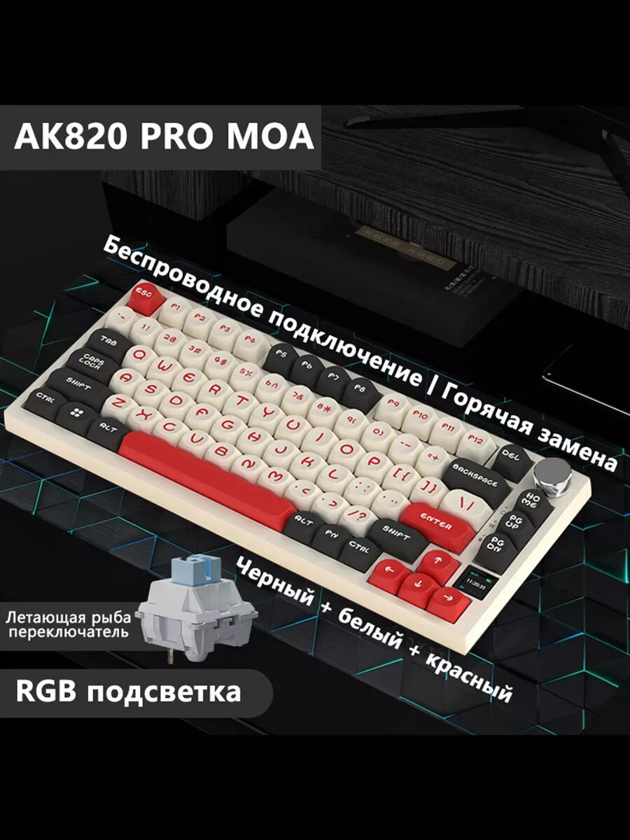 Купить Ajazz AK820 PRO MOA игровая механическая клавиатура, Тройной режим, Flying Fish Switch, Русская раскладка с доставкой по всей России.