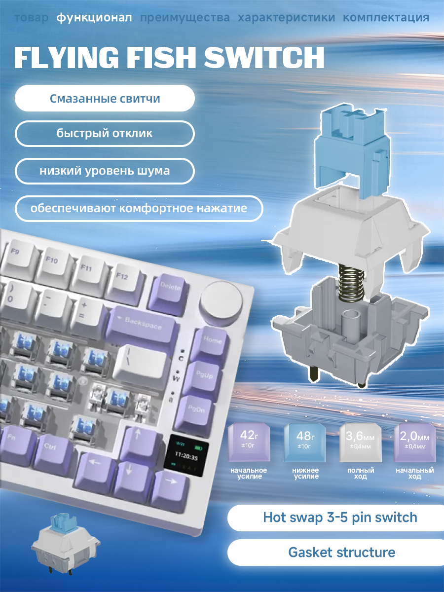 Ajazz ak820 pro Русская версия механической клавиатуры RGB, сиреневый&белый: сравнение цен, характеристики, фото, актуальное наличие и цены.