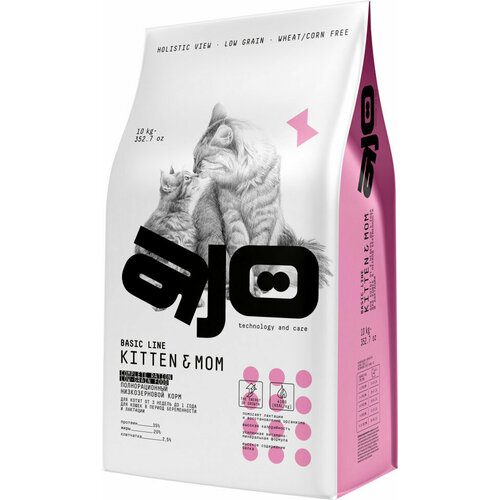 Сухой корм AJO Cat Kitten&Mom для котят, беременных и кормящих кошек с индейкой, 10 кг: сравнение цен, характеристики, фото, актуальное наличие и цены.