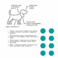 Формула корма разработана с учетом индивидуальных потребностей собак, не содержит кукурузу и пшеницу, наполняющих желудок животных, создавая эффект ложной сытости, и повышающих общий процент белка в корме. При этом сам по себе и кукурузный и пшеничный белки (иначе глютен) неполноценны по аминокислотному составу и часто вызывают аллергию у питомцев.